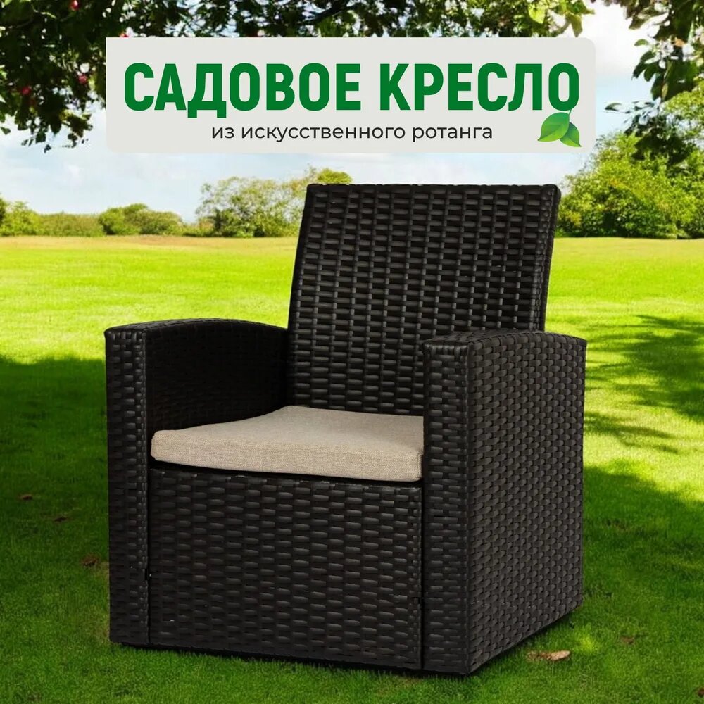 Кресло садовое Сицилия венге, искуственный ротанг, с подушкой, для дачи, металлокаркас, Divan24 интересное: