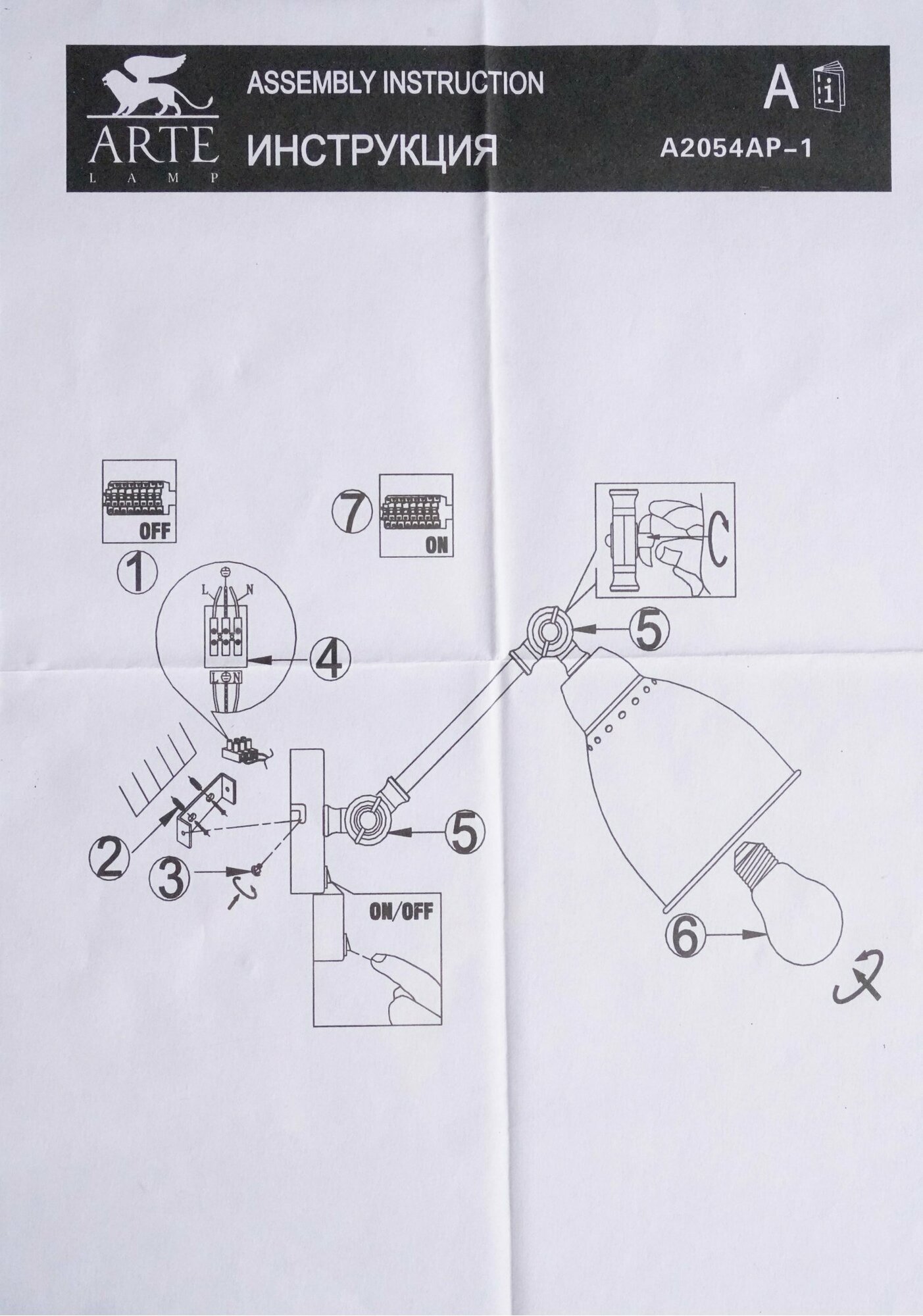 Бра Arte Lamp Braccio A2054AP-1WH интересное: