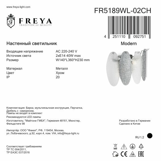 Freya Бра Freya Fiore FR5368WL-02BS
