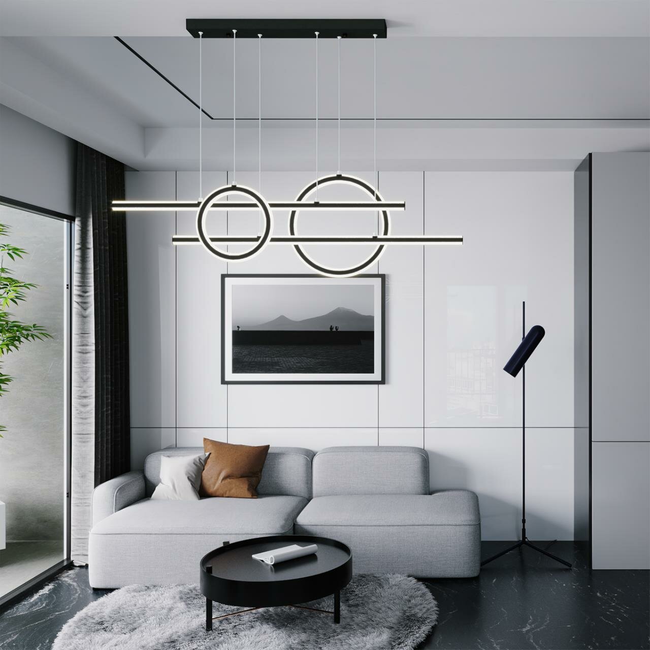 359183 OVER NT23 000 черный Светильник подвесной диммируемый, в комплекте пульт ДУ IP20 LED 4000К 116W 220V ONDO