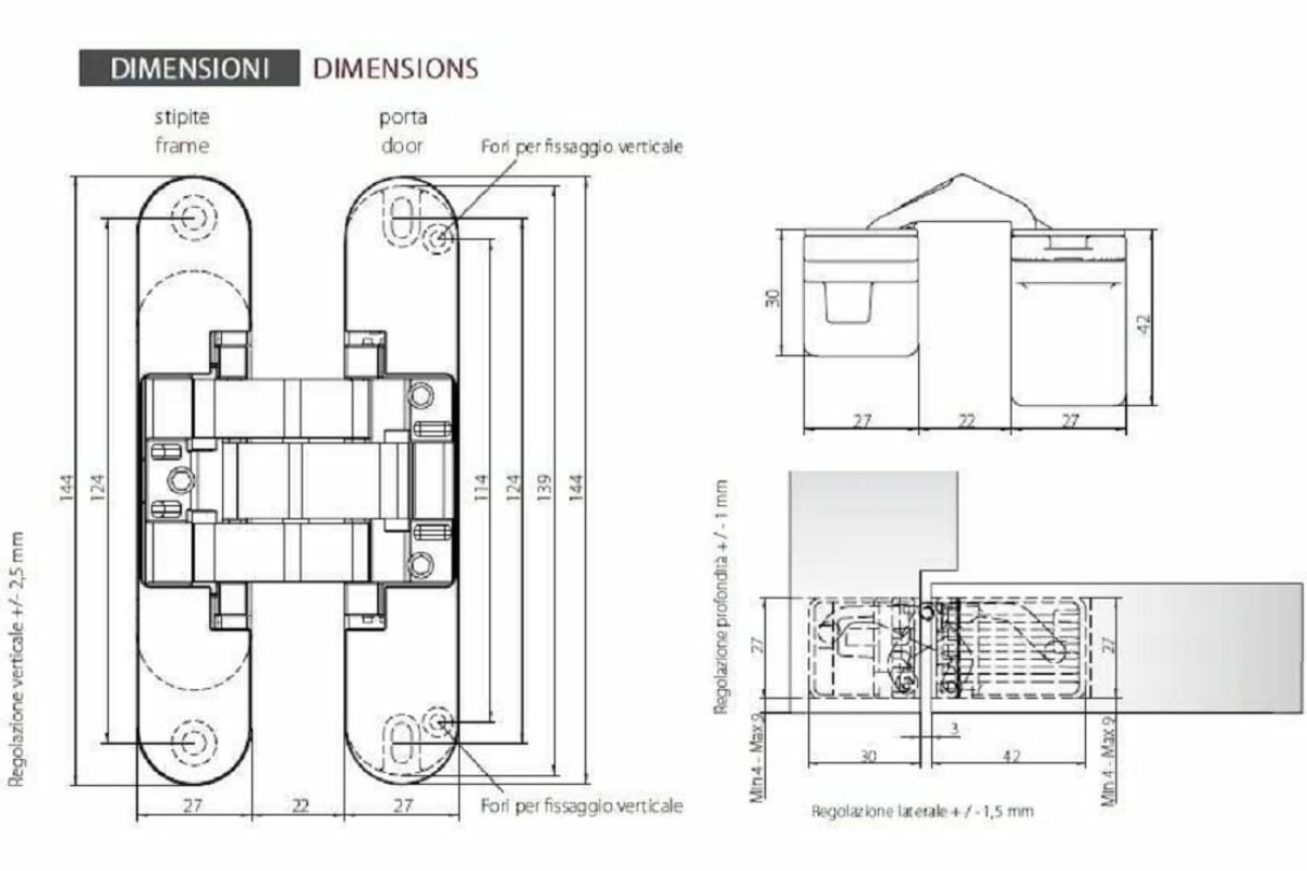 Петля дверная скрытая Morelli с 3-D регулировкой HH-16 PC хром, петля металлическая накладная для межкомнатных дверей
