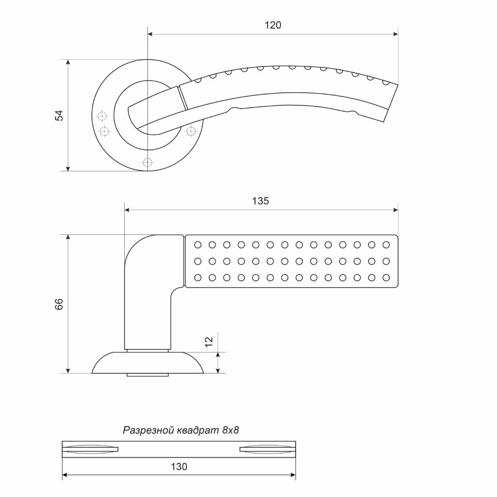 Дверная ручка для входных металлических дверей стандарт 26 SN/CP матовый никель/хром, квадрат 130мм, Комплект ручек