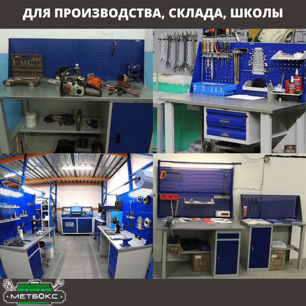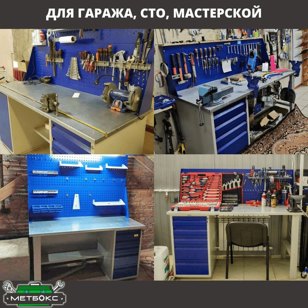 Стол металлический Metalex 750х1400х600 с выдвижными ящиками и перфопанелью