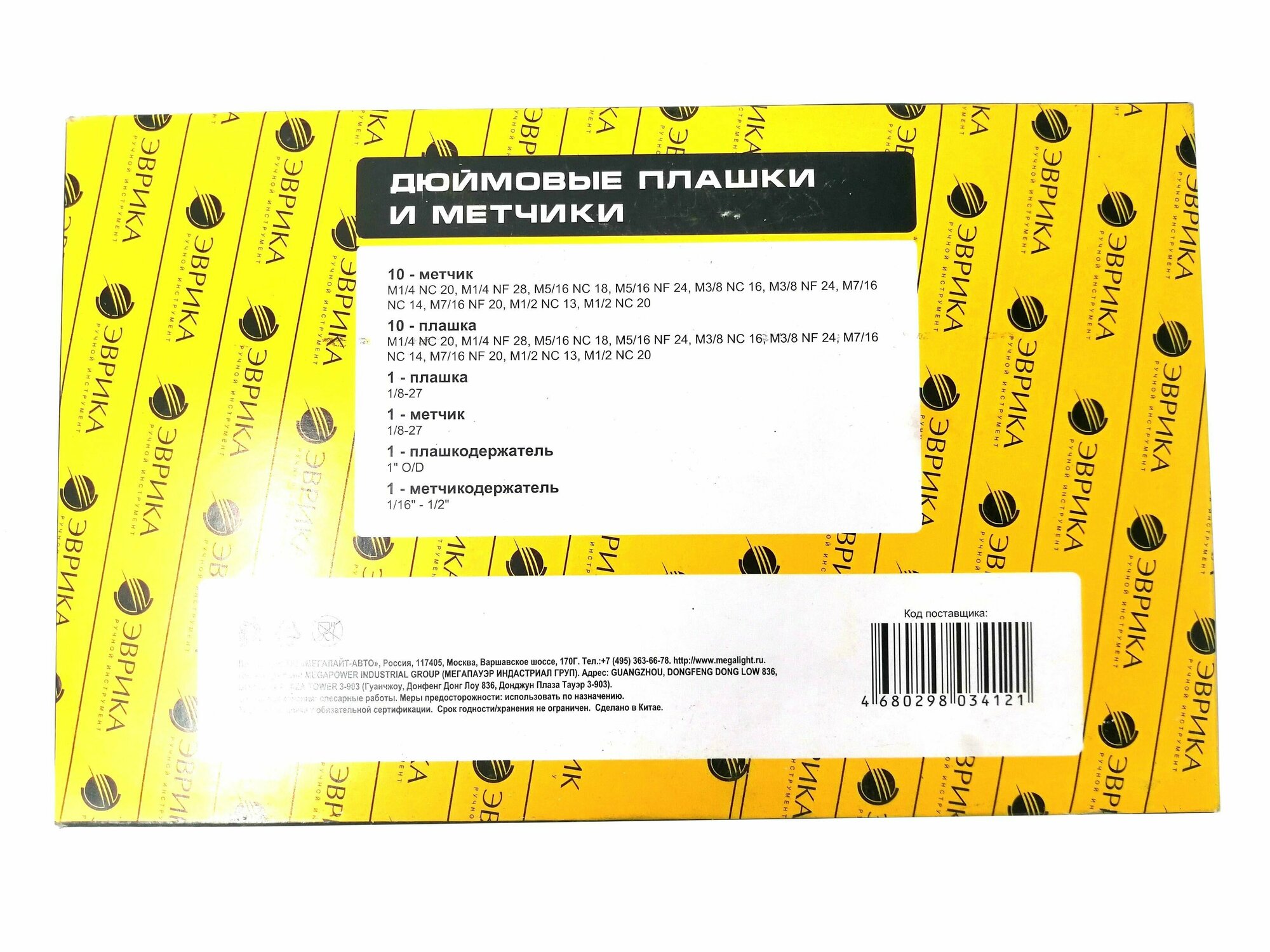 Ниже Вы можете прочитать отзывы на Набор метчиков и плашек ER-00242:дюймовый 24пр.(металл. кейс) эврика, ознакомится с подробными характеристиками, посмотреть интересные обзоры и фотографии на Набор метчиков и плашек ER-00242:дюймовый 24пр.(металл. кейс) эврика.