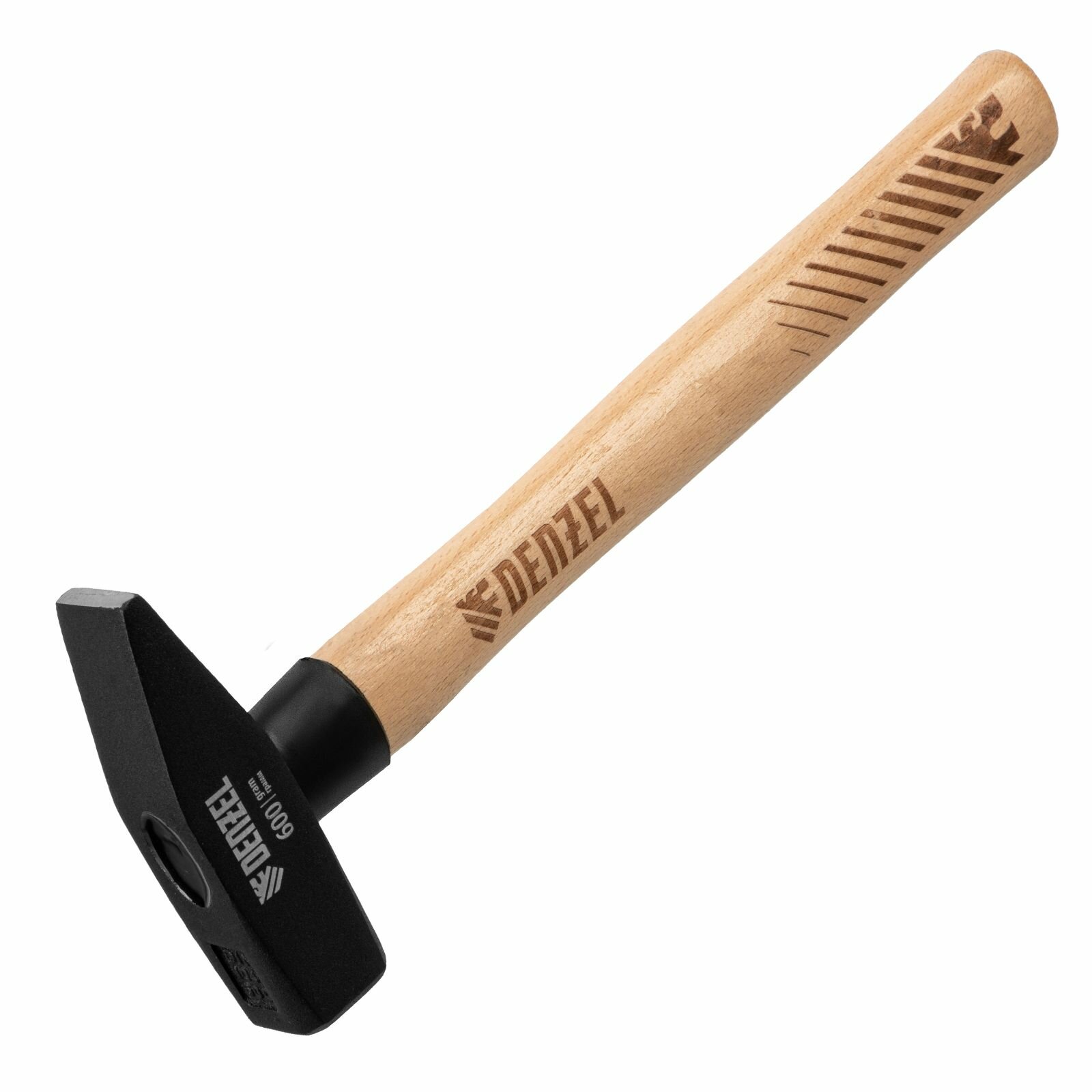 Молоток слесарный Denzel 600 г, кованый квадратный боек, буковая рукоятка 10431