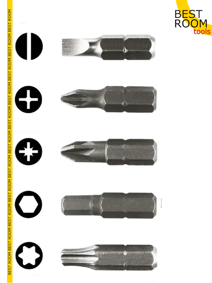Набор бит 33 предмета Best Room с магнитным держателем и адаптером в кейсе. интересное: