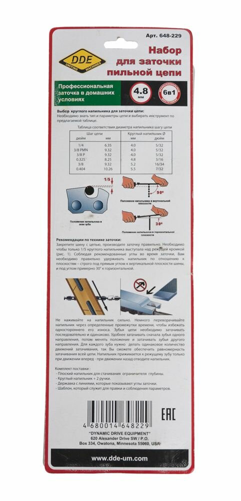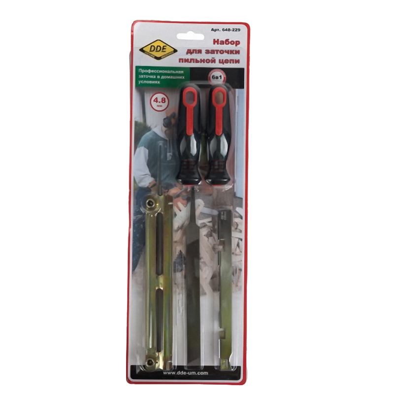 Заточной набор DDE - круглый напильник 4,8мм, плоский напильник, планка, калибр, 2 ручки интересное: