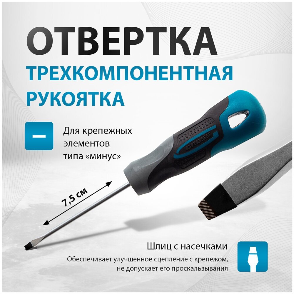 Отвертка Gross SL3 0 x 75 мм, S2, трехкомпонентная рукоятка 12101 интересное: