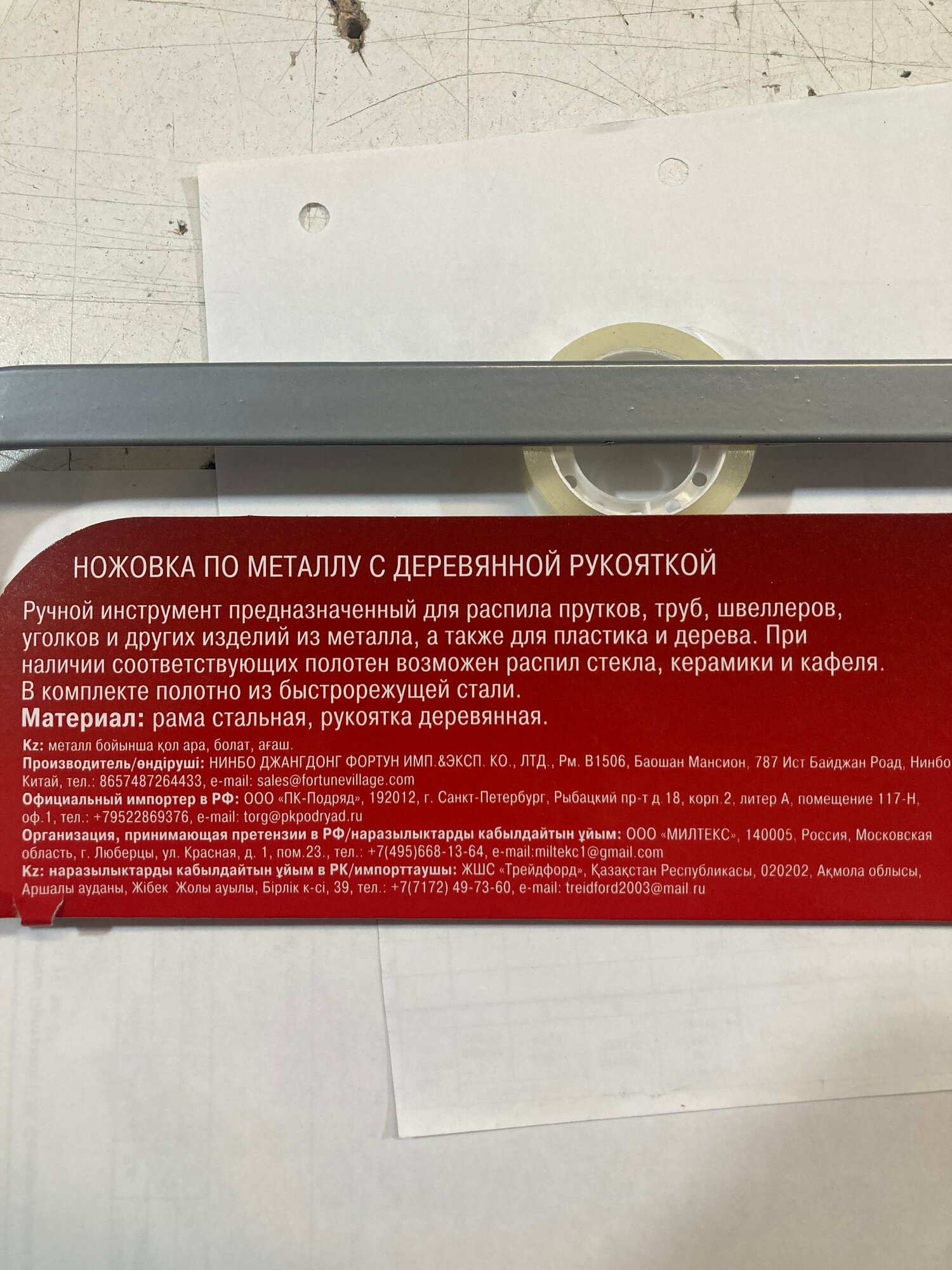 | Тип | ножовка по металлу / рукоятка |