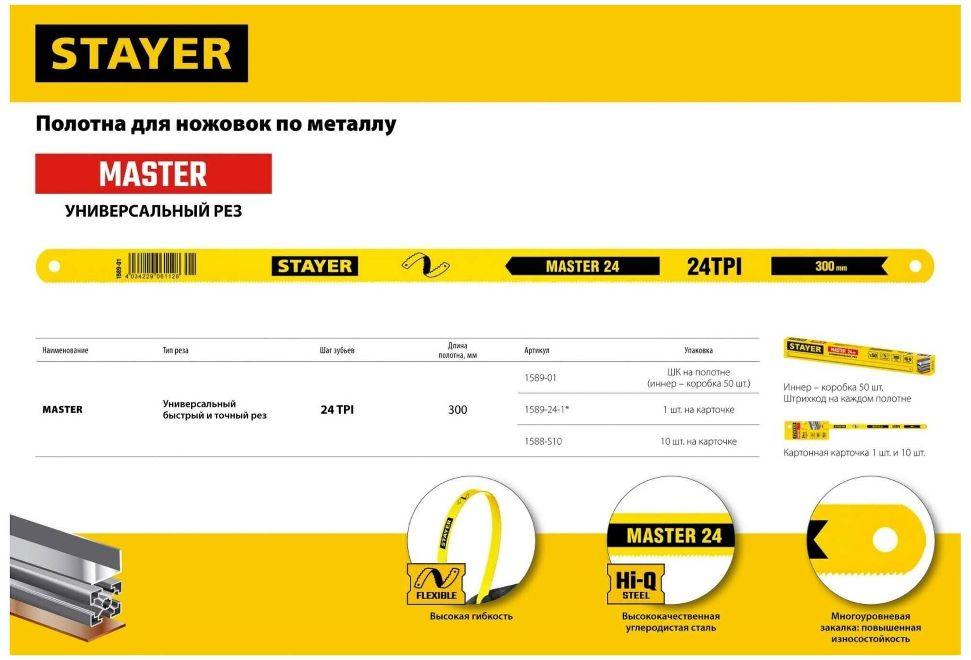 Полотно STAYER 24 TPI, шаг 1 мм, 300 мм, 10 шт, для ножовки по металлу (1588-S10) интересное: