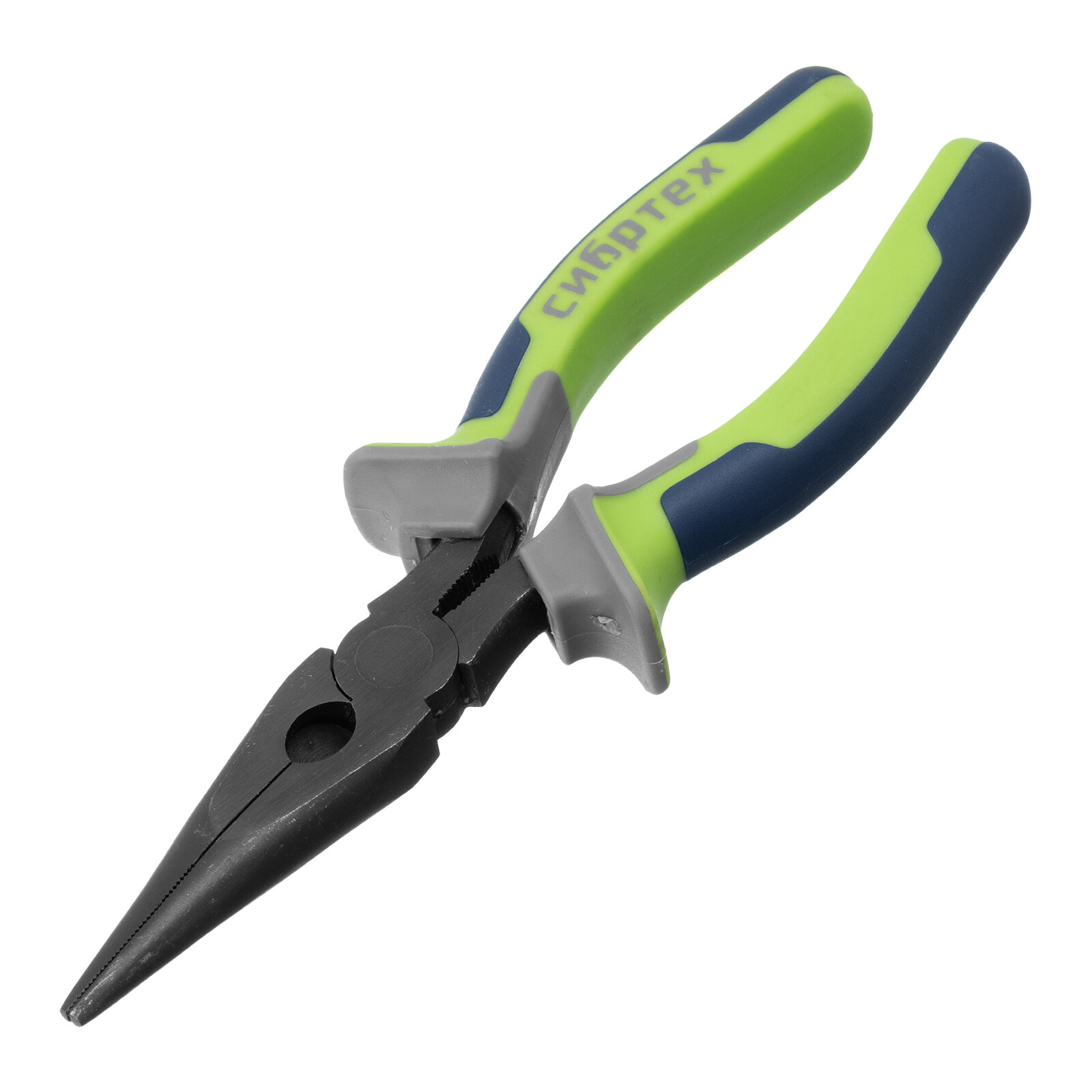 Купить Длинногубцы прямые Сибртех 180 мм, фосфатирование, трехкомпонентные рукоятки 17156