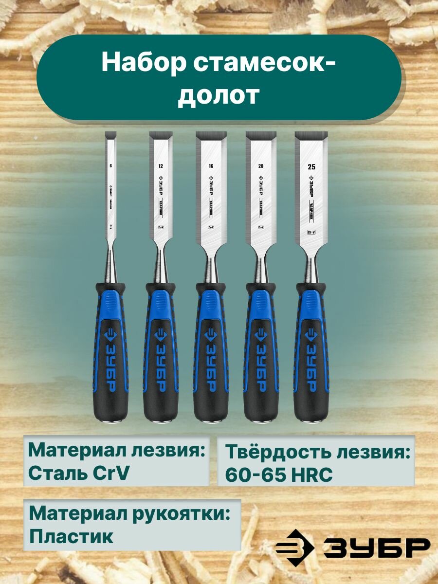 ЗУБР 5 шт, 6/12/16/20/25 мм, набор стамесок 18097-H5