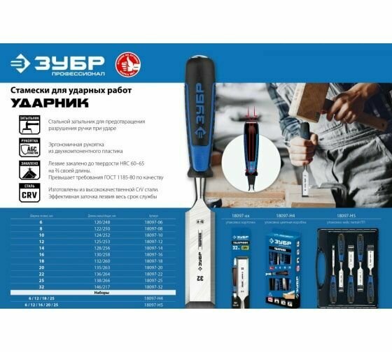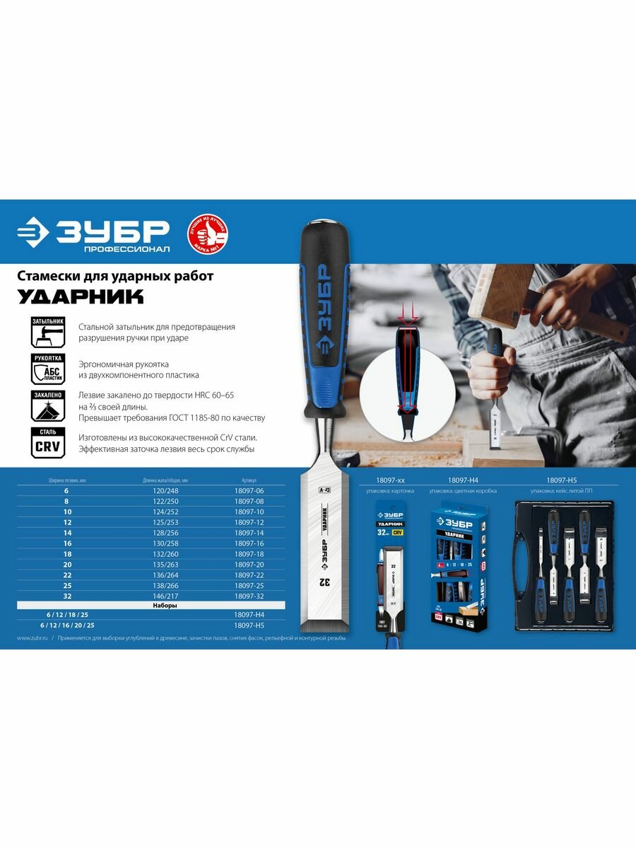 Набор стамесок ЗУБР ударных 5 шт. интересное: