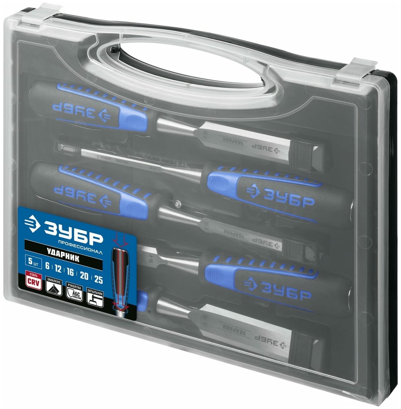 ЗУБР Ударник набор стамесок-долот с двухкомпонентной рукотяткой, 5 шт