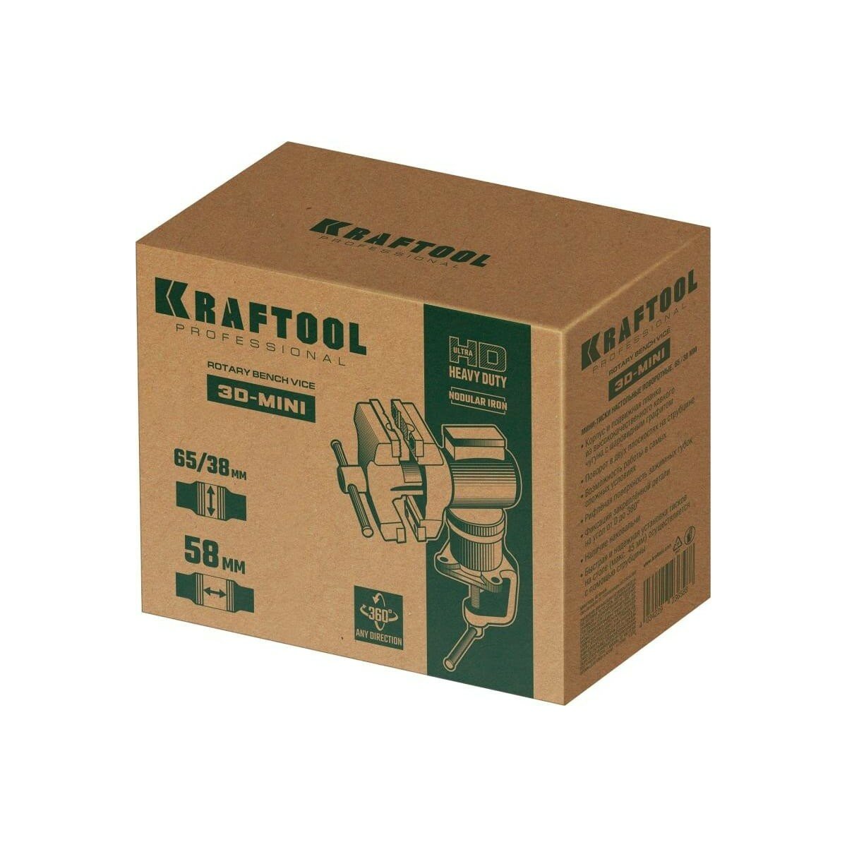KRAFTOOL 65/38 мм, настольные тиски многофункциональные с поворотом 3D-MINI 32714-65