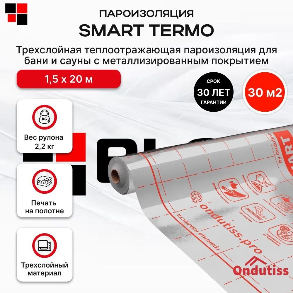 Металлизированная плёнка строительная пароизоляционная отражающая Ондутис ONDUTISS SMART Termo (30 м2) интересное: