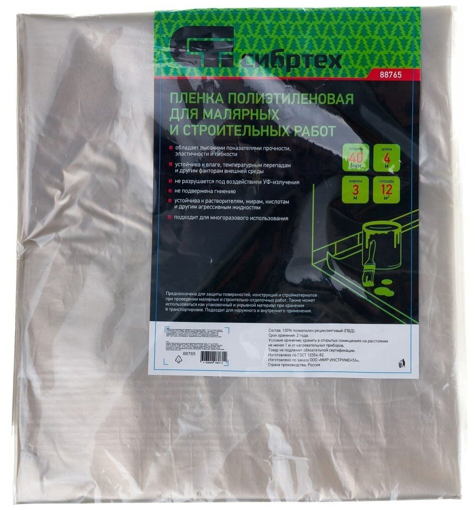 Пленка полиэтиленовая для малярных и строительных работ, 3 х 4 м, 40 мкм Сибртех интересное: