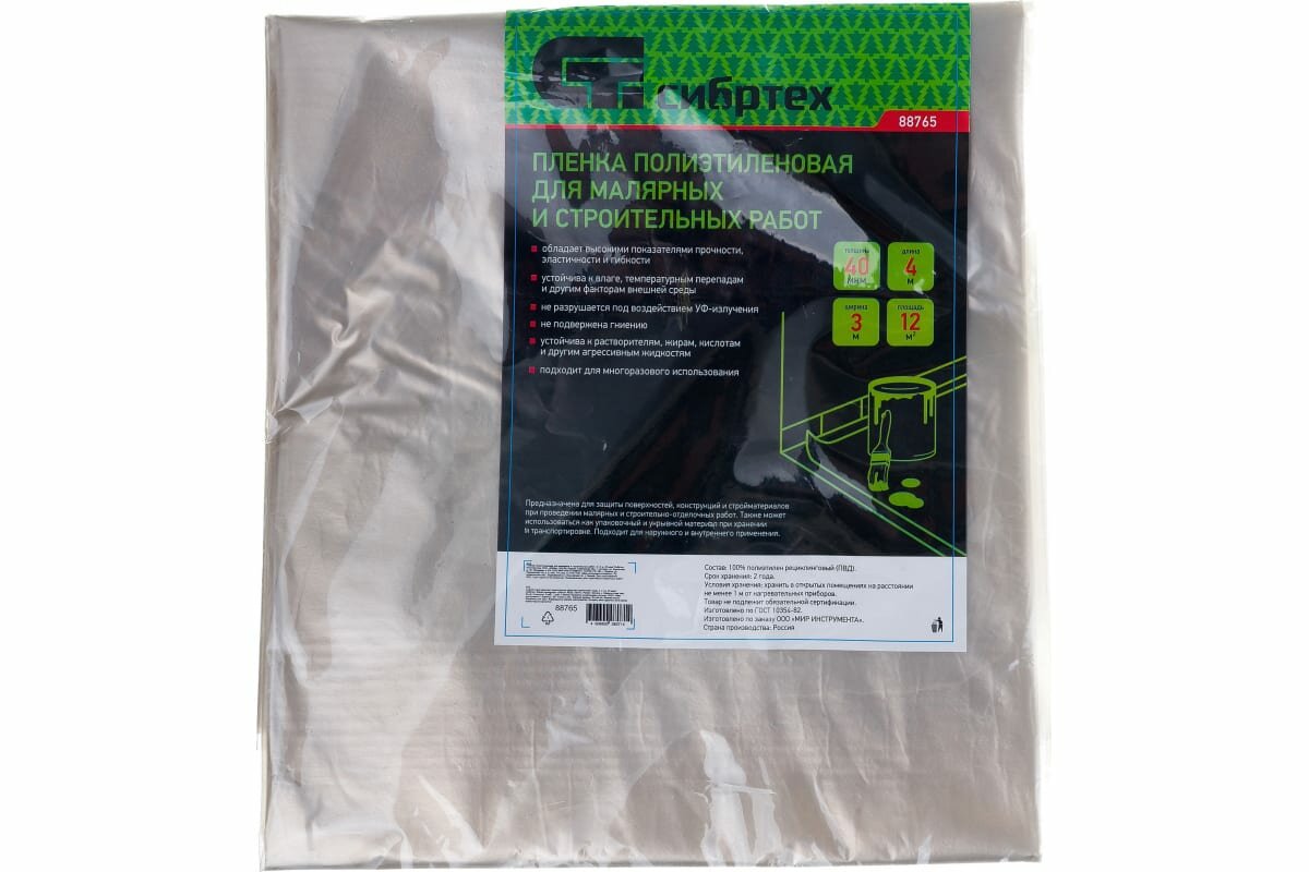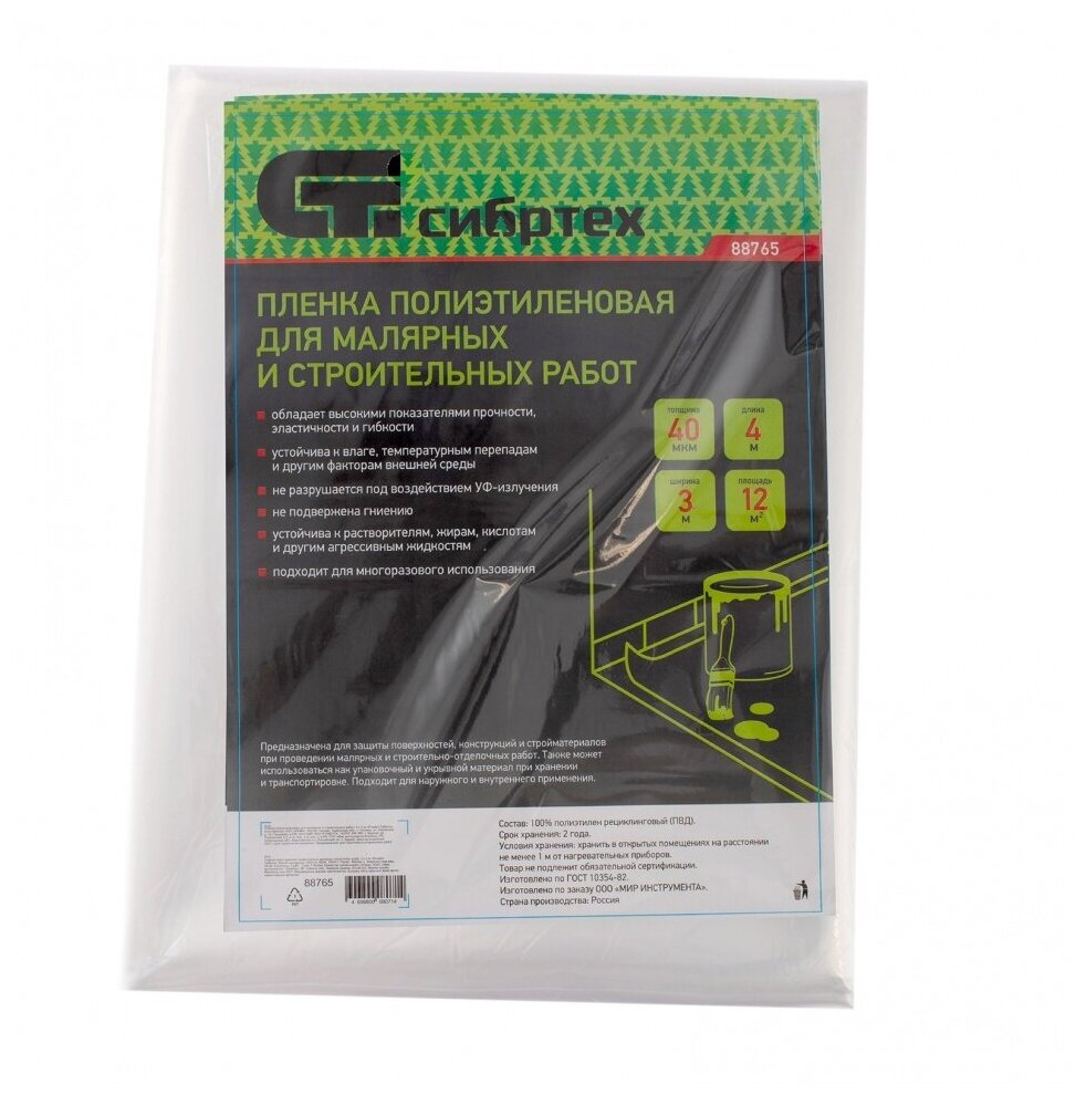 СИБРТЕХ Пленка полиэтиленовая для малярных и строительных работ, 3 х 4 м, 40 мкм/ 88765