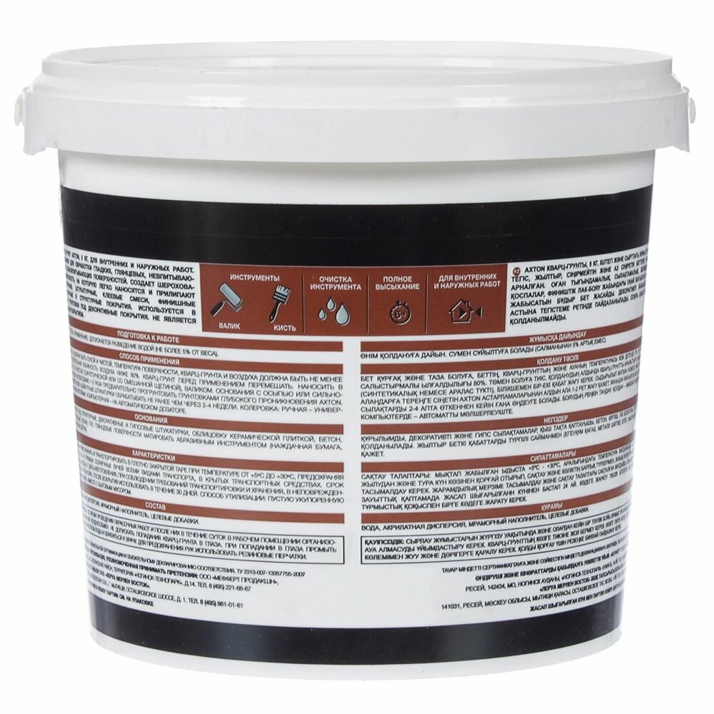 Акстон грунтовка кварцевая для декоративных покрытий (5кг) / AXTON кварц-грунт для внутренних и наружных работ (5кг) интересное: