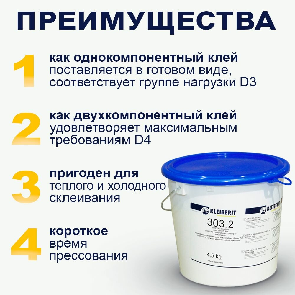 Клей Kleiberit 303.2 для дерева поливинилацетатный D3/D4 4.5кг