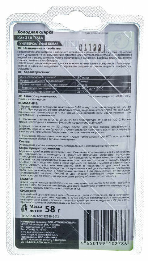 Клей холодная сварка Ultima универсальный быстрого действия 58 г интересное: