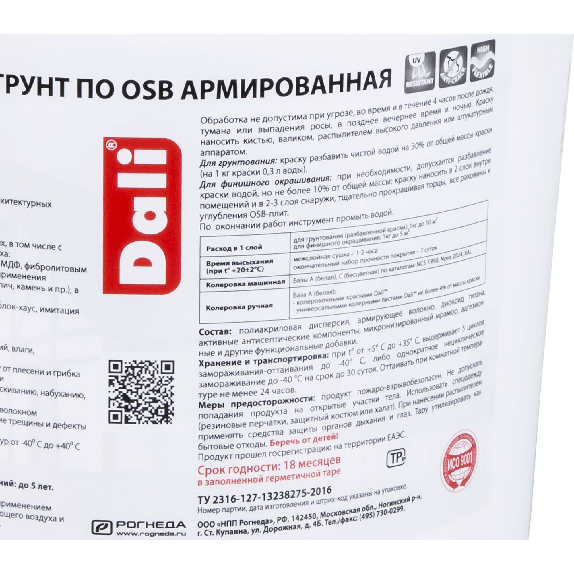 Краска-грунт по OSB Dali , армированная, матовая, база A, белая, 3 кг