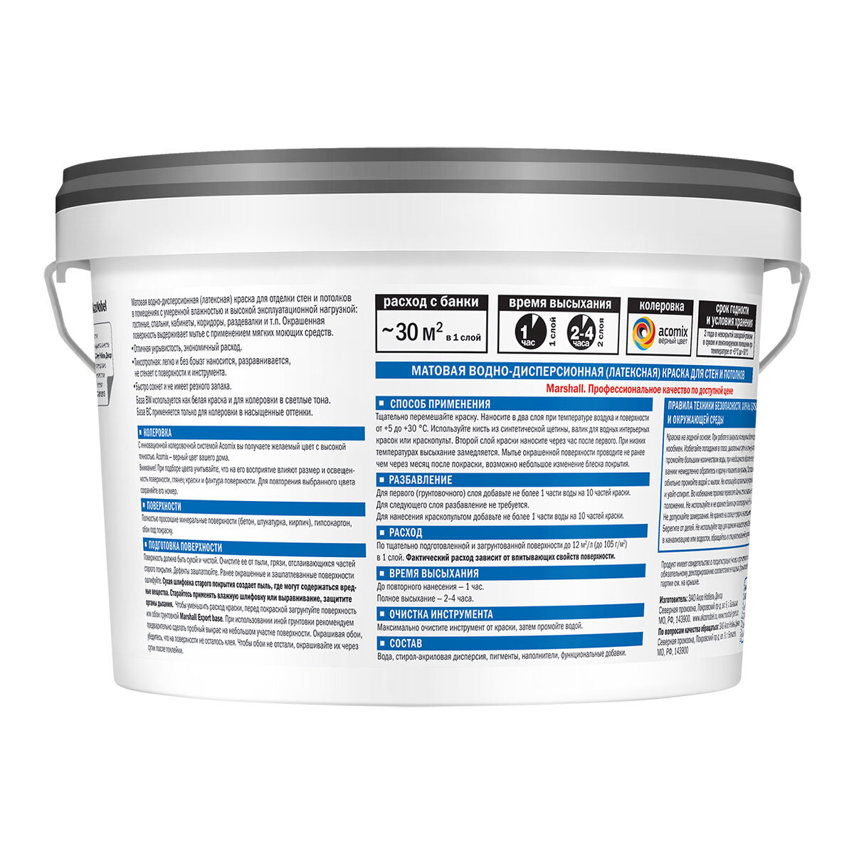 Краска для стен и потолков латексная Marshall Export-7 матовая база BC 2,5 л.