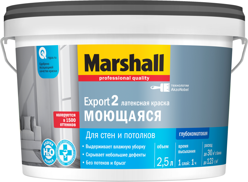 Краска интерьерная Marshall Export-2 2,5 л, база А белый