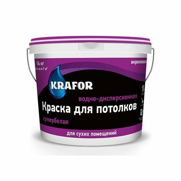 Краска водно-дисперсионная для потолков Krafor , матовая, 14 кг, супербелая