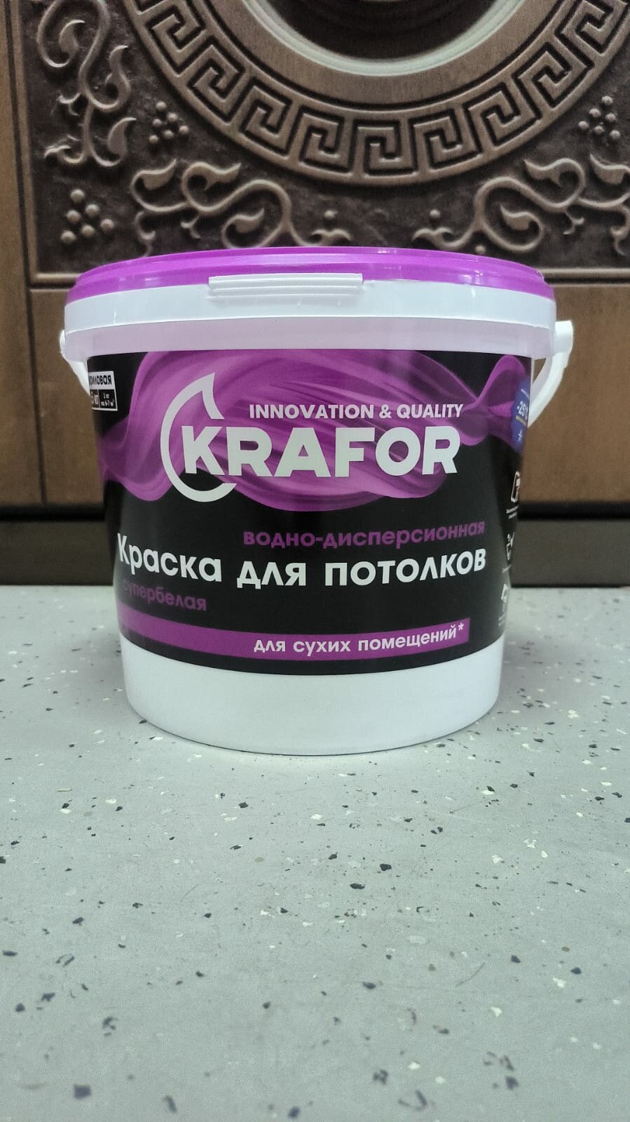 Краска водно-дисперсионная для потолков Krafor , матовая, 3 кг, супербелая