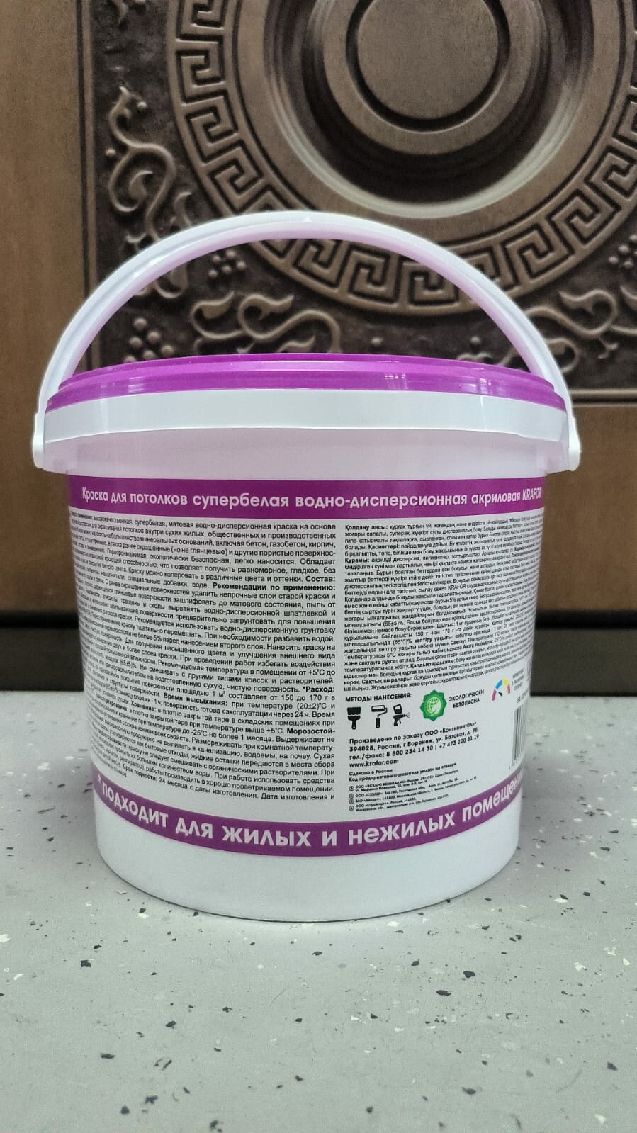 Краска водно-дисперсионная для потолков Krafor , матовая, 1,5 кг, супербелая