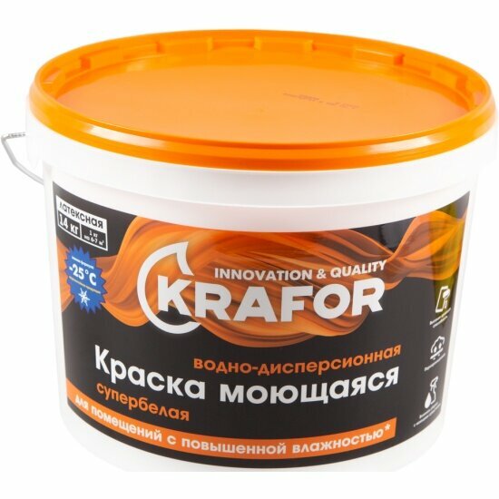 Краска Krafor ВД интерьерная латексная моющаяся супербелая 14 кг