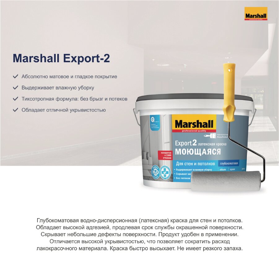 MARSHALL EXPORT 2 моющаяся краска латексная, для стен и потолков, глубокоматовая, база BW (4,5л)