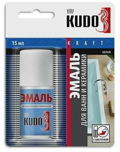 Эмаль KUDO 7К1301 белая с кисточкой для ванн 15мл
