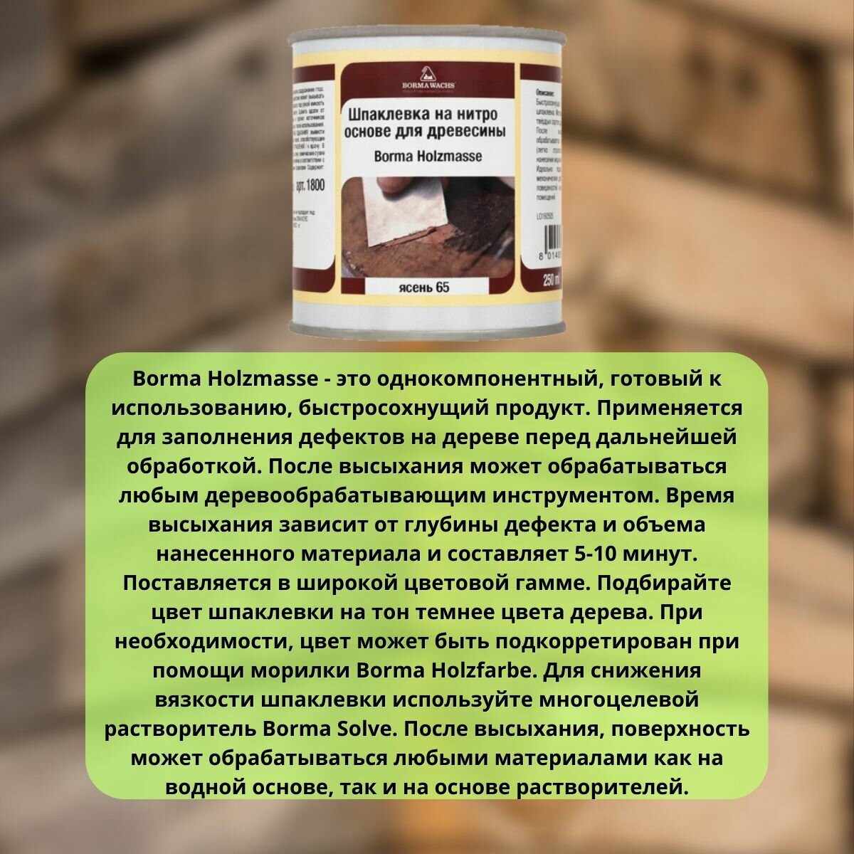 Быстросохнущая шпаклевка для дерева Borma Holzmasse 250 мл 65 Ясень R1800FR интересное: