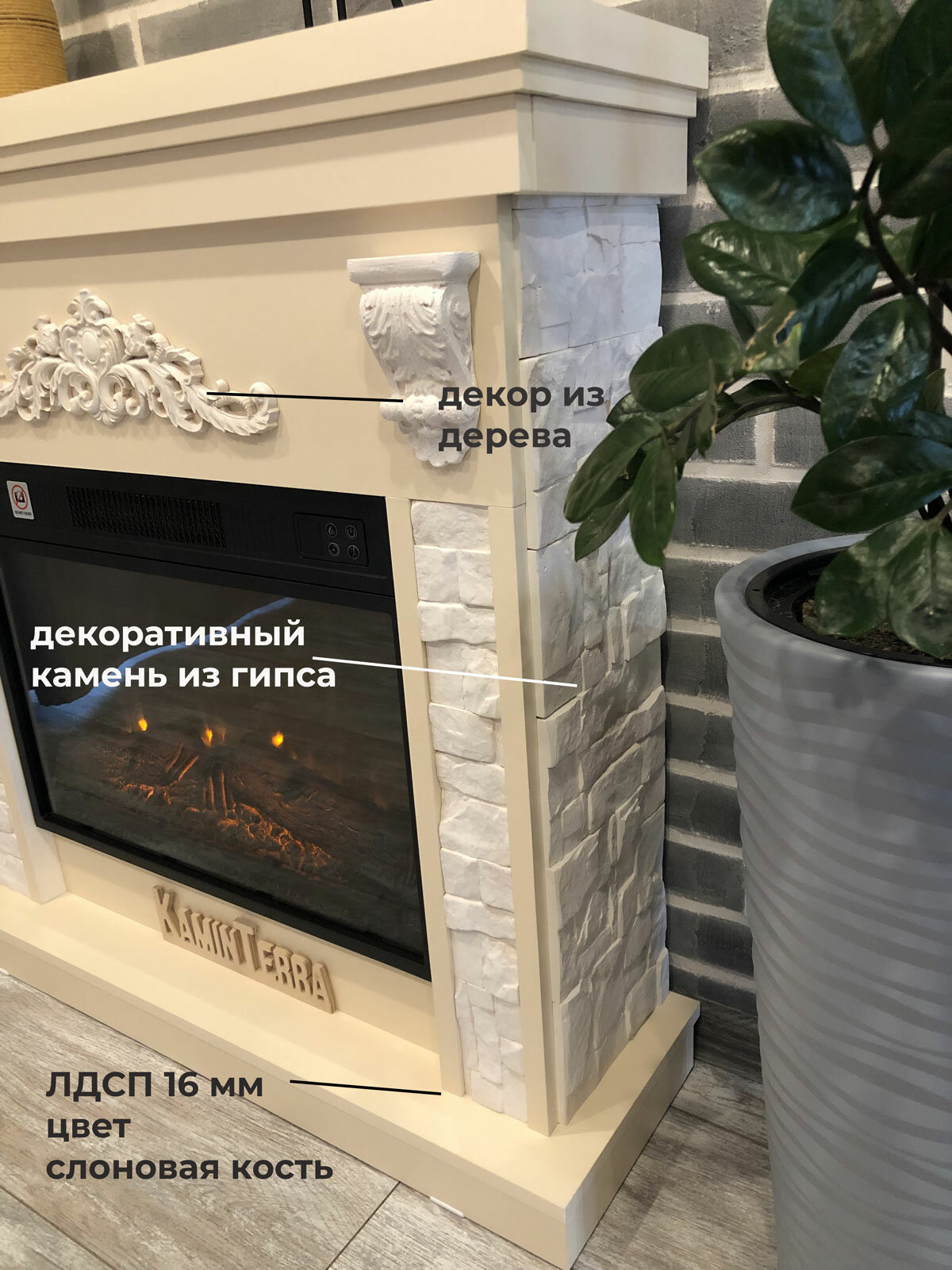 Камин электрический бежевый KaminTerra Милана Крем с обогревом и звуком интересное: