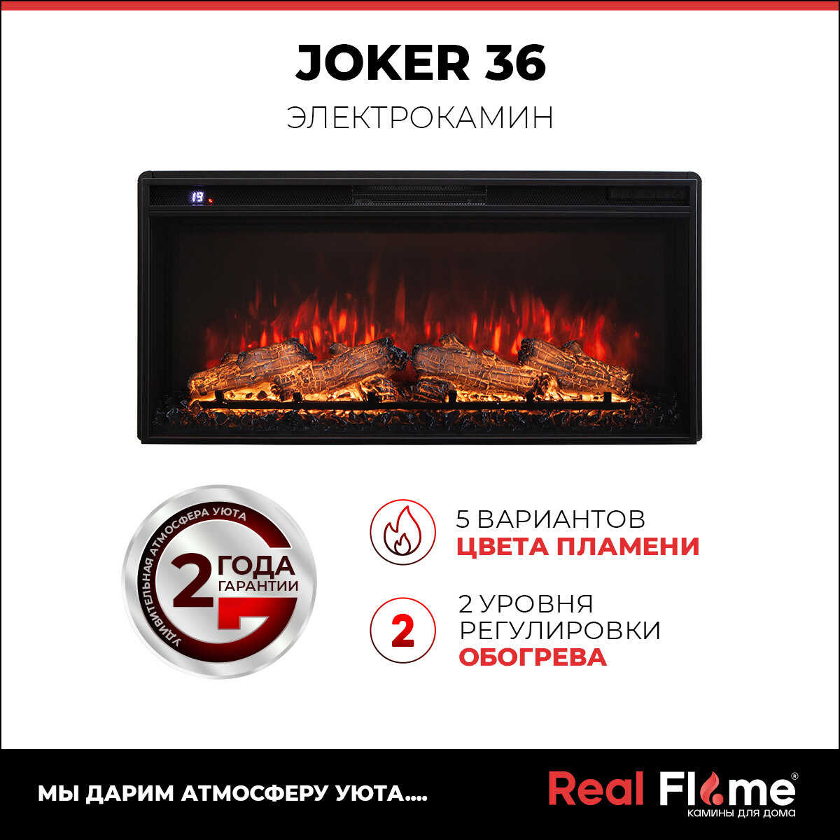 Электроочаг RealFlame Joker 36 , 6 цветов пламени, звуковой эффект
