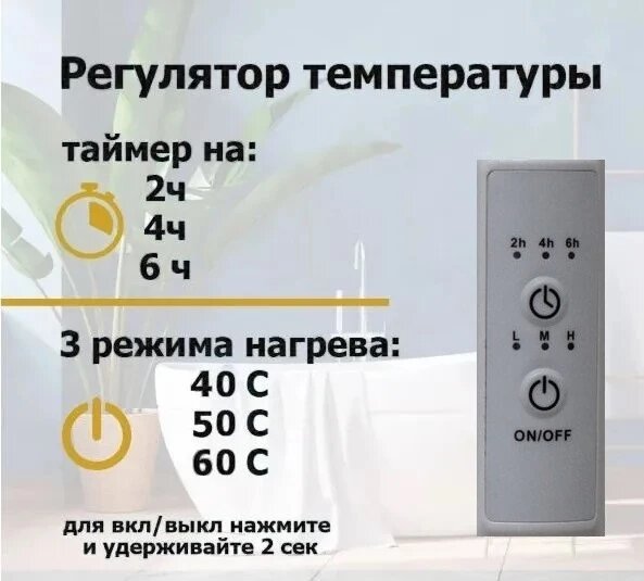 | Особенности | автоотключение при нагреве, кнопка включения/выключения, с таймером, терморегулятор |