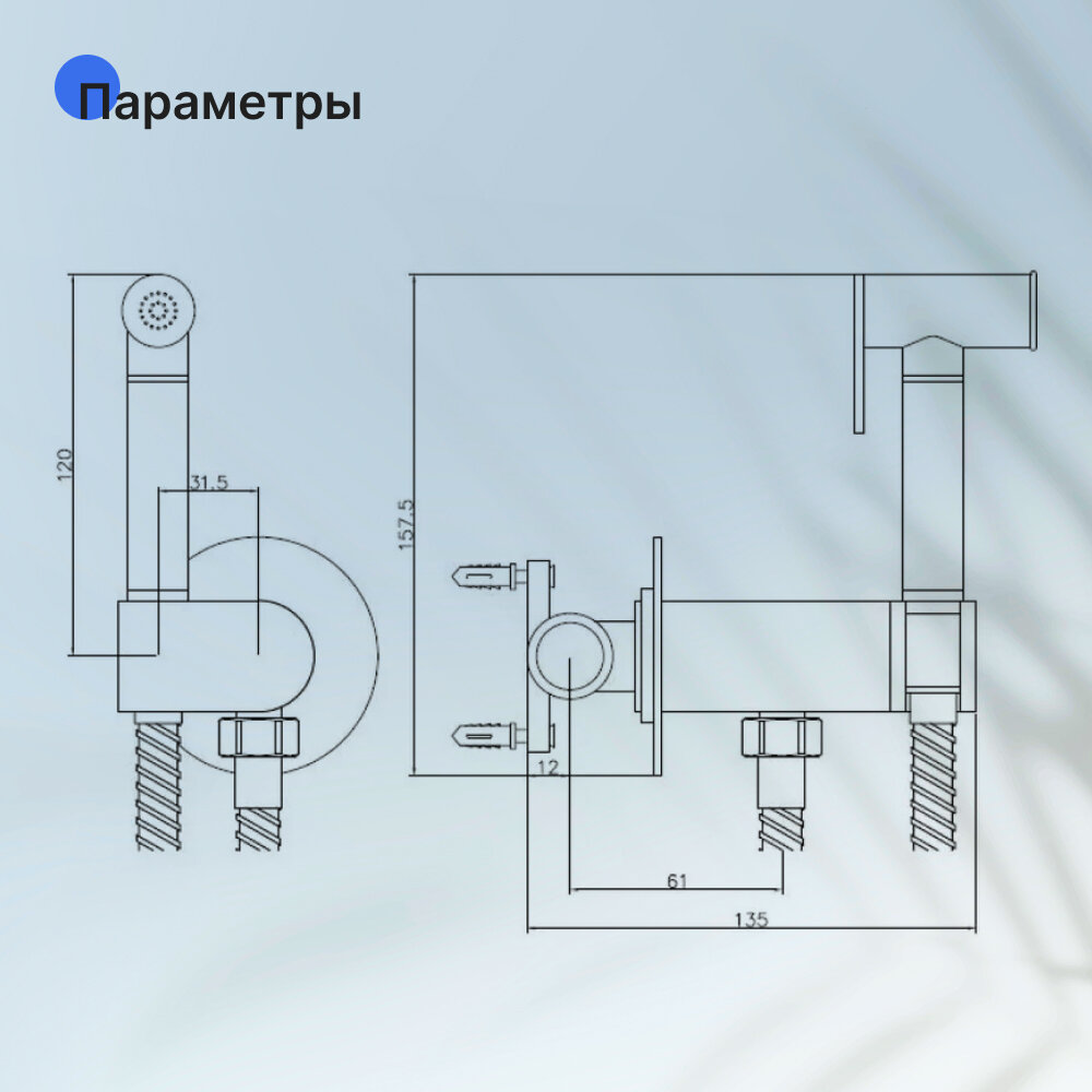 | Комплектация | смеситель; монтажный комплект; душевой шланг; гигиеническая лейка |