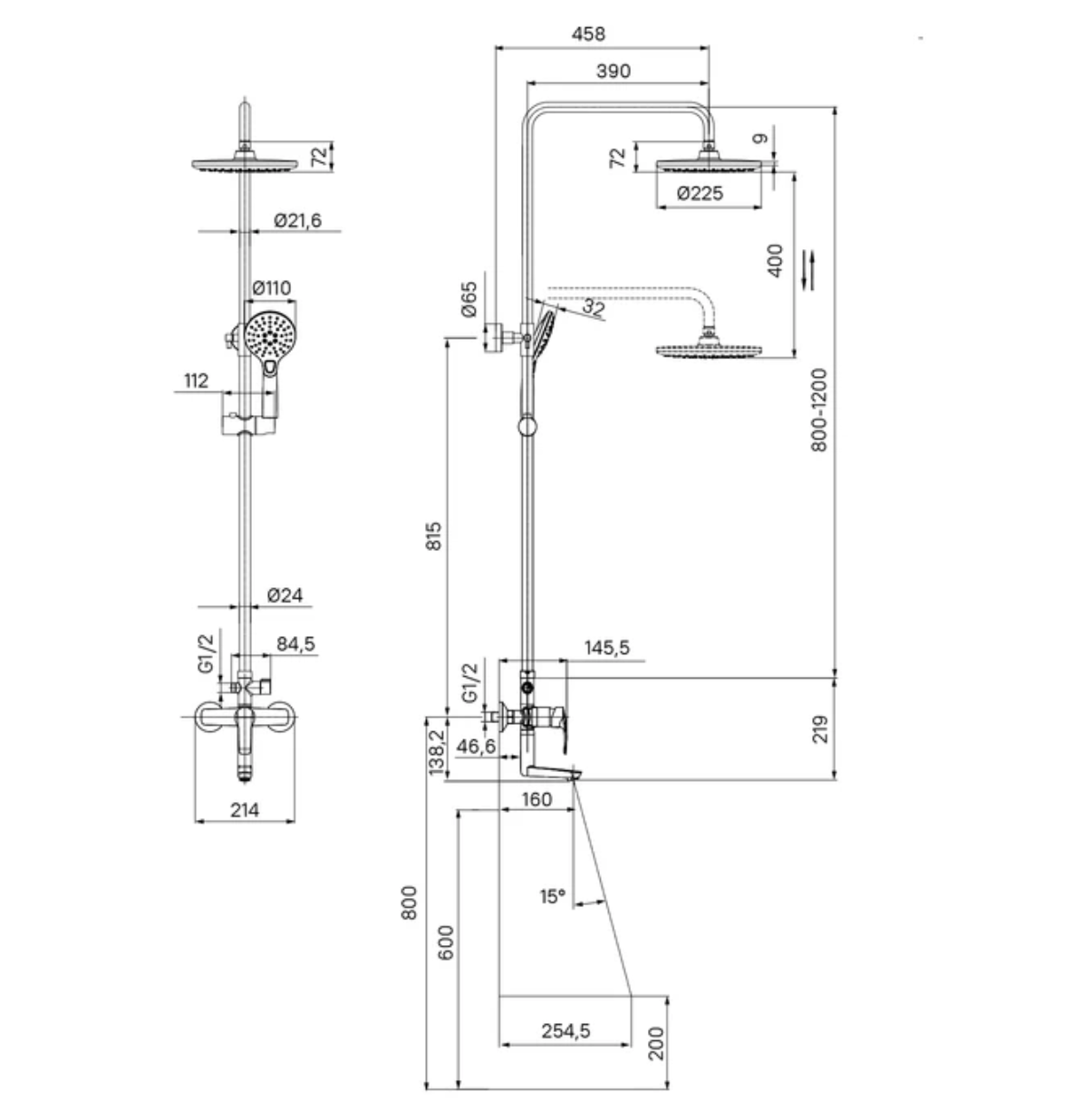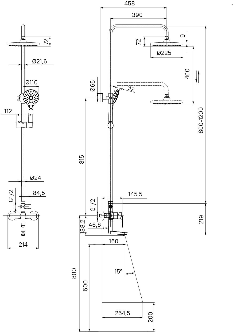 | Дополнительная информация | переключатель потоков/душевая лейка/эксцентрики;Поверхность - глянцевая;Страна - Россия;Исполнение шланга - пластиковый;Вылет верхнего душа,см - 45,8 |