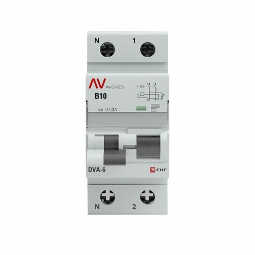 Выключатель автоматический дифференциального тока 2п B 10А 30мА тип AC 6кА DVA-6 Averes, EKF RCBO6-1PN-10B-30-AC-AV (1 шт.)