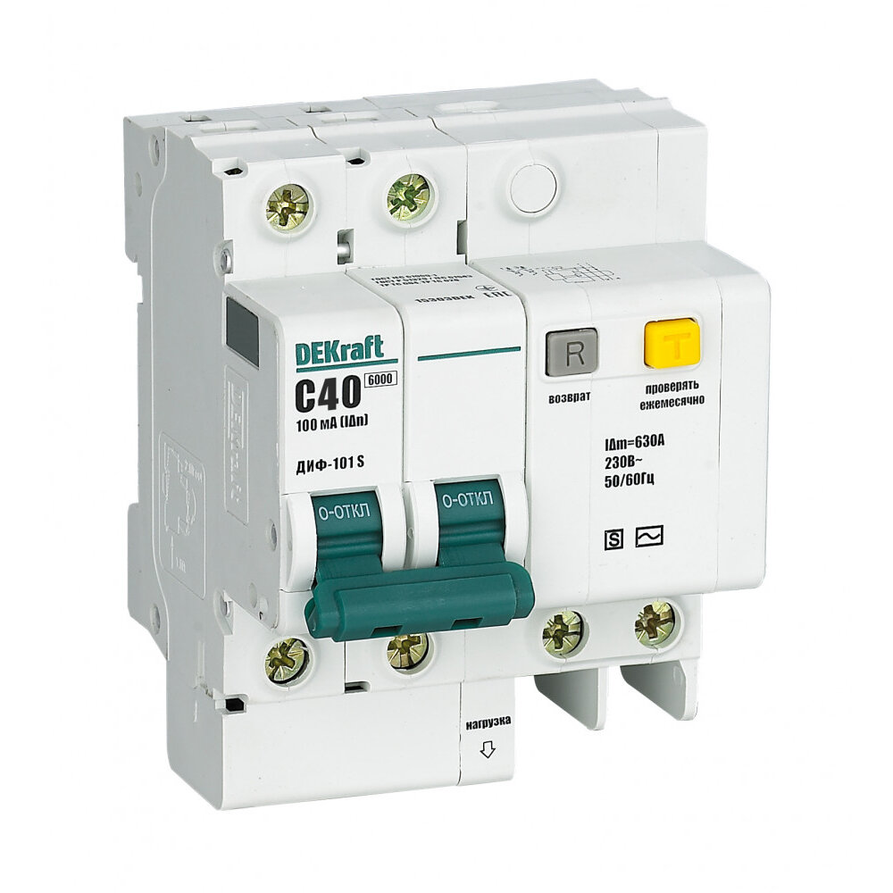 DEKraft АВДТ со встроенной защитой от сверхтоков 2P 63A 100мА селективный ДИФ-101 S