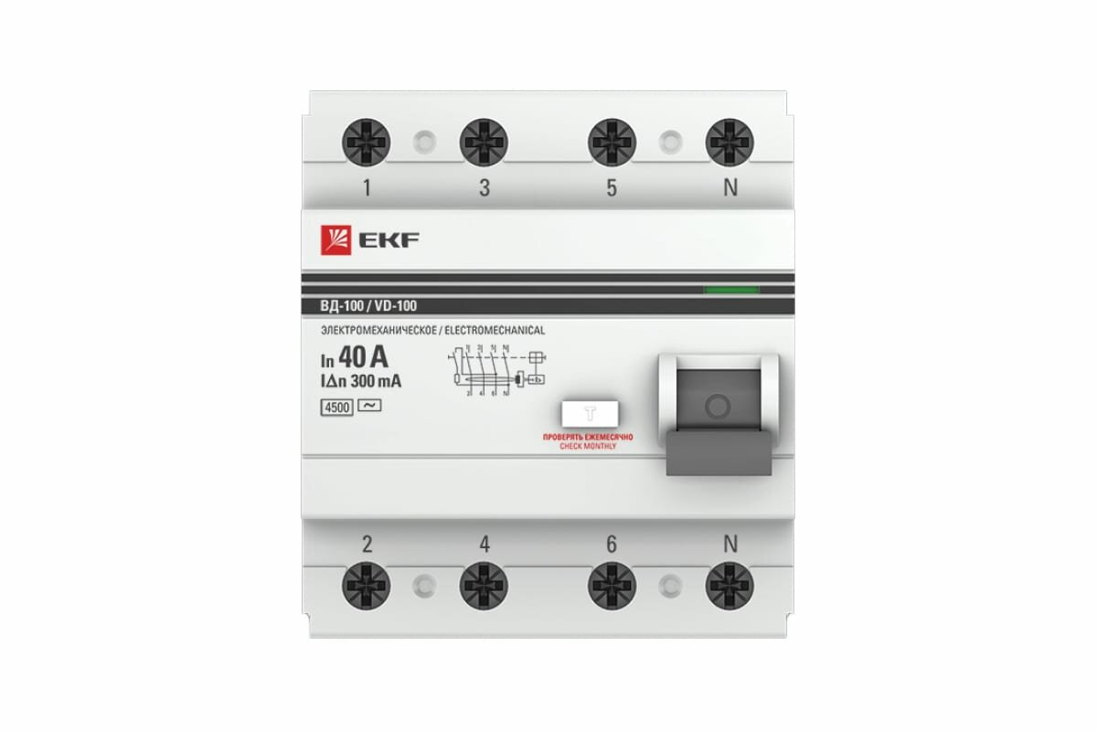 Устройство защитного отключения УЗО ВД-100 4P 40А/300мА (электромеханическое) EKF PROxima