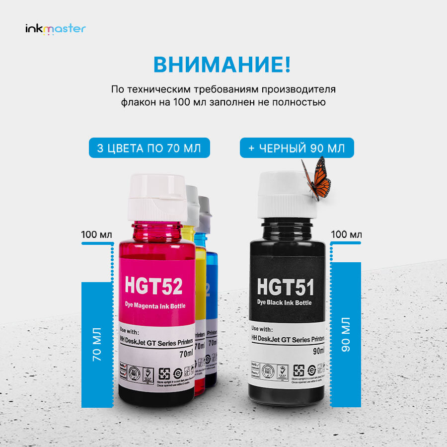Чернила GT51/GT52 (GT 51/GT 52) для HP DeskJet-GT5810, 5820, 5822 / InkTank 110ser, 310ser, 410ser и тд, комплект 4цвета
