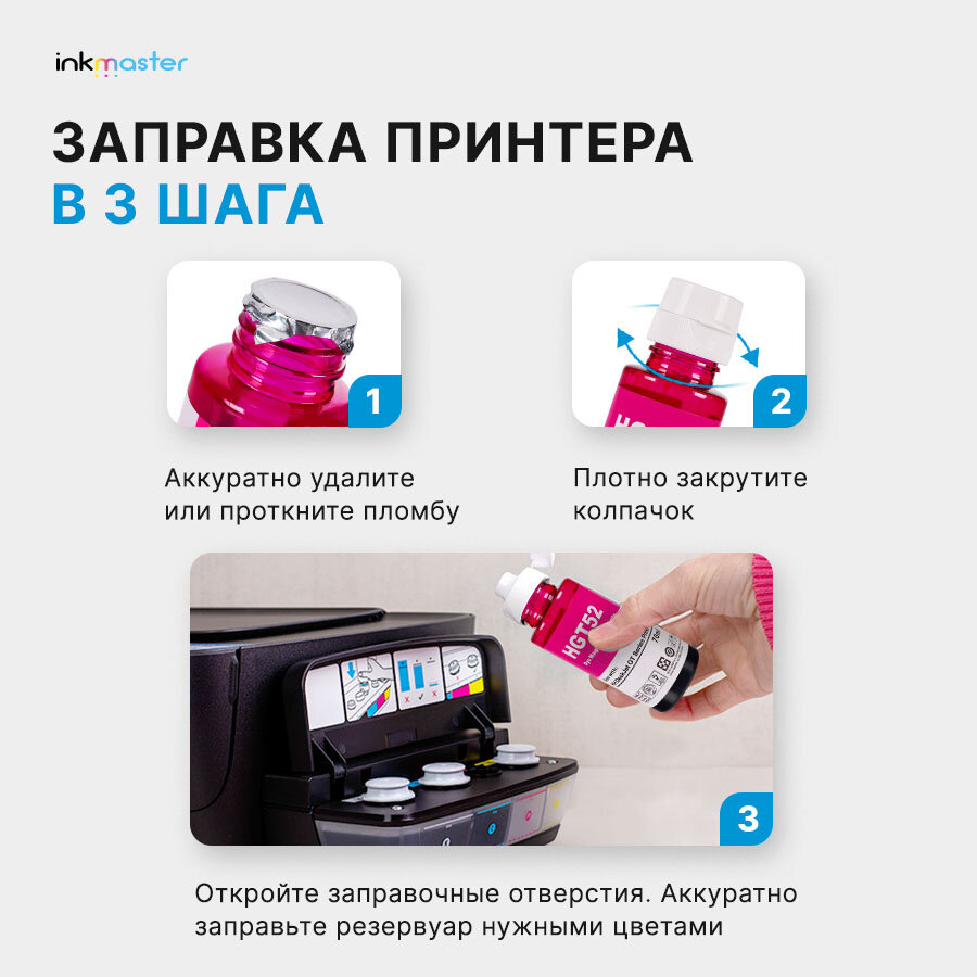 Купить Чернила GT52 Magenta HP DeskJet-GT5810, 5820, 5822 / InkTank 110ser, 115, 310ser, 315, 410ser и тд, 70мл, совместимый