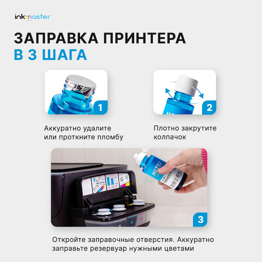 Чернила для HP GT51/GT52, краска для заправки принтера InkTank 115 315 319, Smart Tank 500 513 515, DeskJet GT 5810 и тд