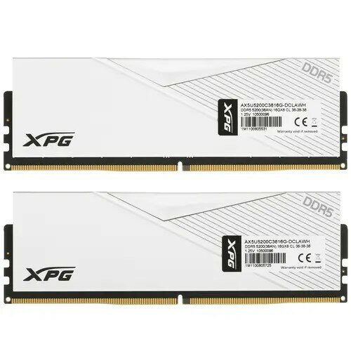 Модуль памяти 32GB (2 x16GB) ADATA XPG Lancer (AX5U5200C3816G-DCLAWH), DDR5, UDIMM, 5200 MHz CL38-38-38, 1.25V, Белый Радиатор интересное: