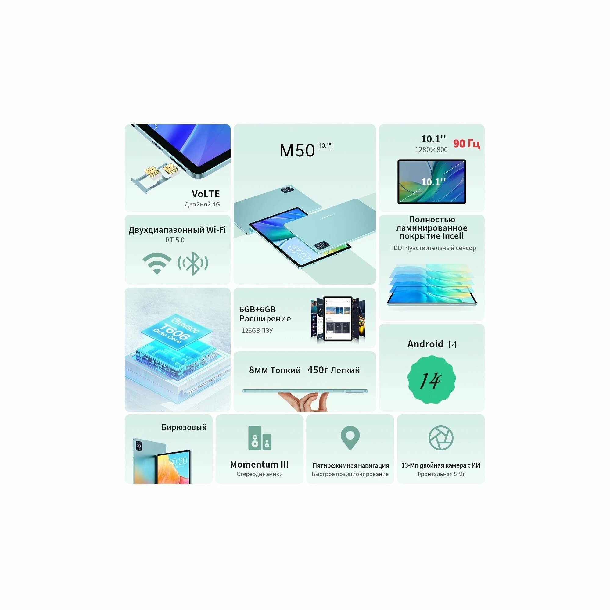 Купить 10.1" Планшет TECLAST M50 6/128 GB T606 4G, 1280 x 800, 90Гц, Android 14, голубой