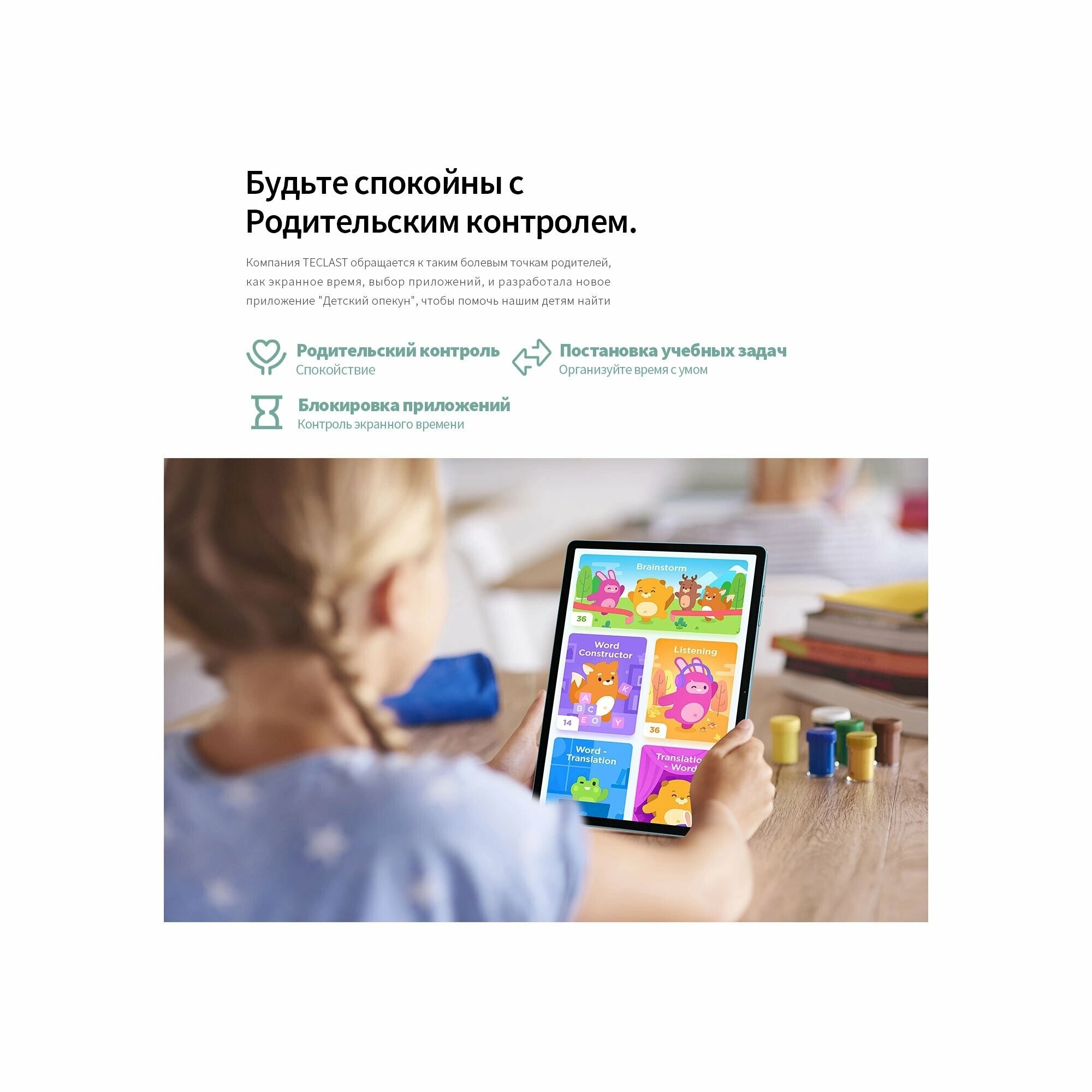 Детский планшет TECLAST P30T Kids 10.1", 4ГБ, 64GB, Wi-Fi, Android 14 синий