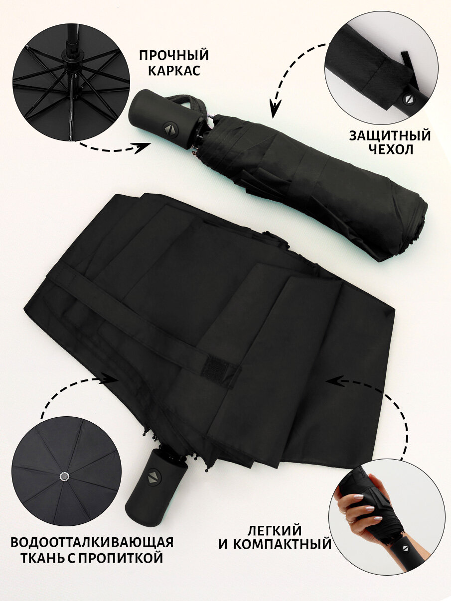 Зонт Складной Классика черный мужской, автомат, диаметр купола 97 см